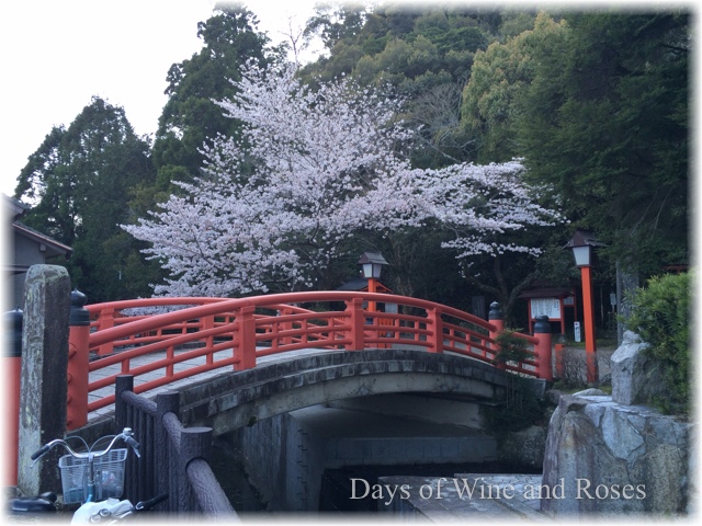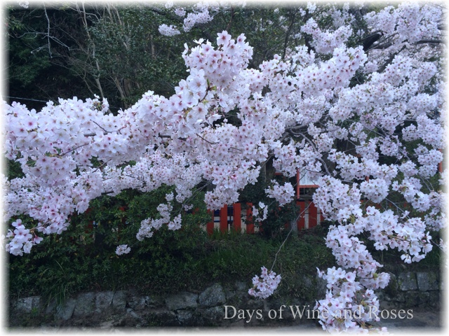 神社の近くは小さな疎水が流れていて、その傍らの桜が満開でした。