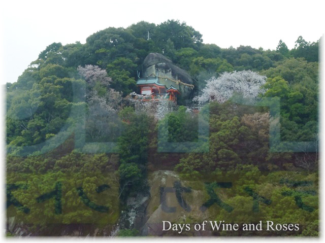 桜の花に囲まれた巨大な岩、さすがに熊野の神が降りられたもの。言葉の本来の意味でありがたい、奇跡のようでありました。