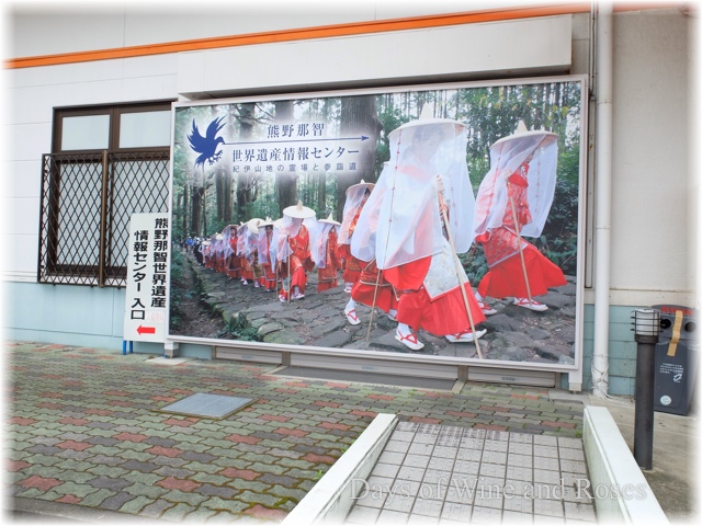 平安時代の熊野古道の女性の装束でしょうか?大きな世界遺産のポスターがありました。