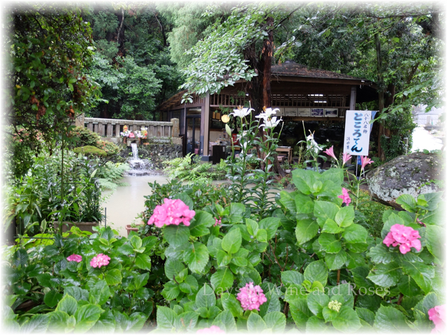 ここは紫陽花に彩られた茶屋になっています。清水の美味しい水を材料にところてんが名物なのです。