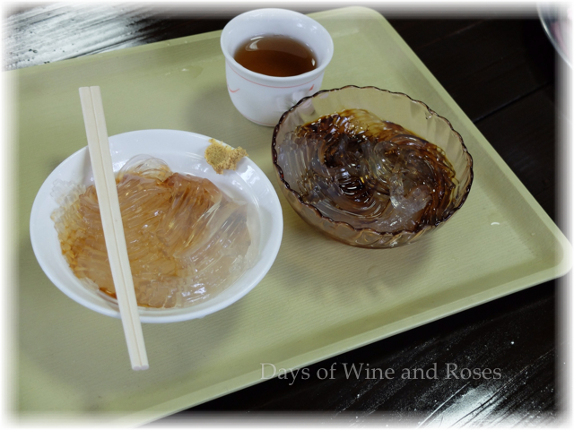 九州では酢醤油でしか食べないので、関西風に黒蜜のところてんって食べてみたかったのです。