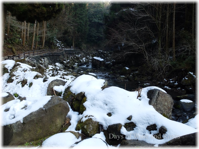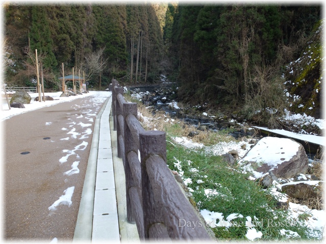 折しも大分には大雪が降った後なので、道にも川にも雪が残っています。