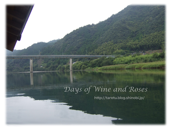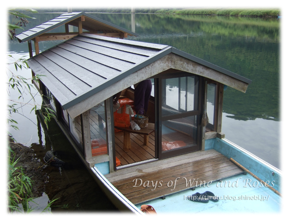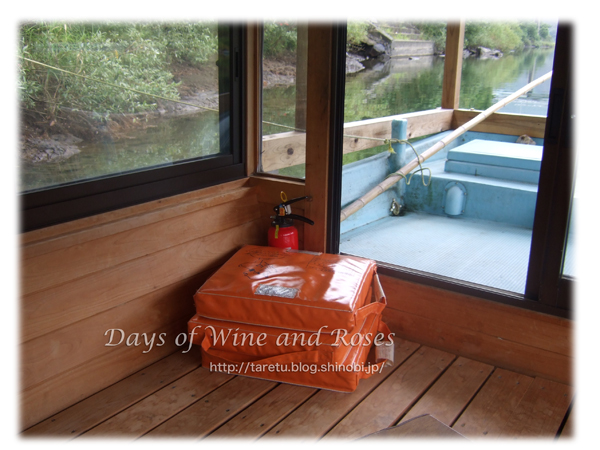 板張りに、小さなテーブルまであって、屋形船の中はとても快適です。あいにくの雨だけど、曇ってるので暑くもなく寒くもなく。