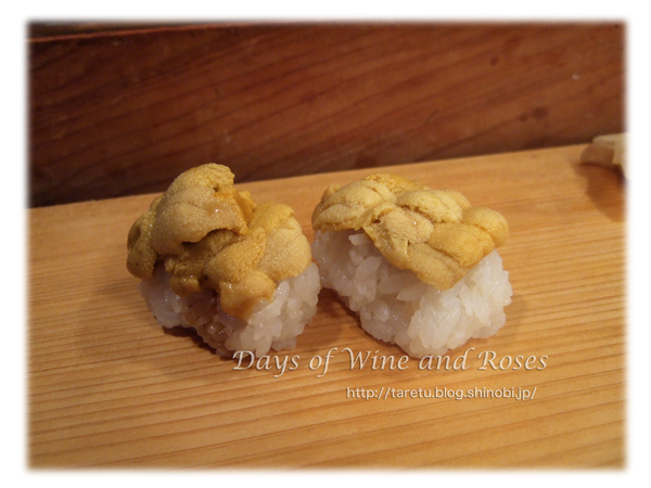 もう、これが絶品中の絶品。ウニの甘みと、ほろっとくずれるシャリ。このほろっと崩れる食感をだすために、わざわざ柔らかめに握ってあるとか。