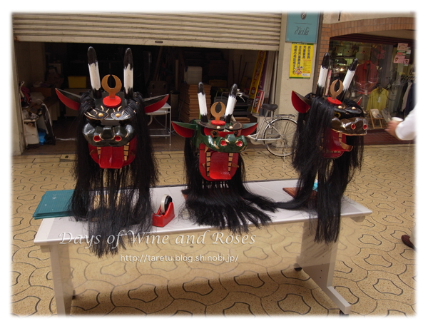どういう行事なのかよくわかりませんでしたが、アーケードの中でみんなで牛鬼のヘッドをつくっていました。かっこいいなあ。