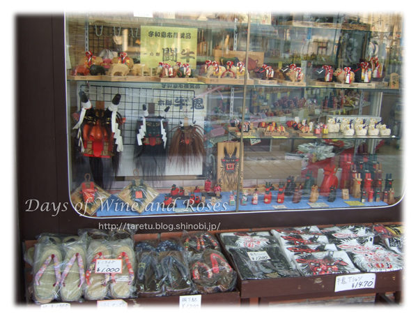 もちろん、みやげもの屋にはたくさんの牛鬼さんグッズが売っています。後、闘牛グッズもね。