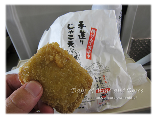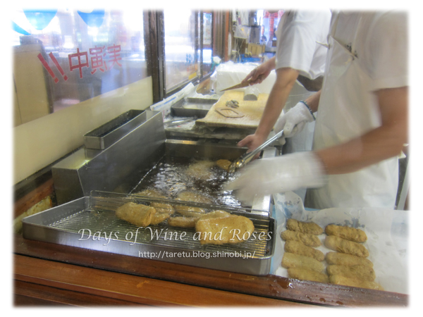 目の前で揚げたて実演。いい~匂いが駅には充満していて、おみやげに買い求めていく人も多そうです。