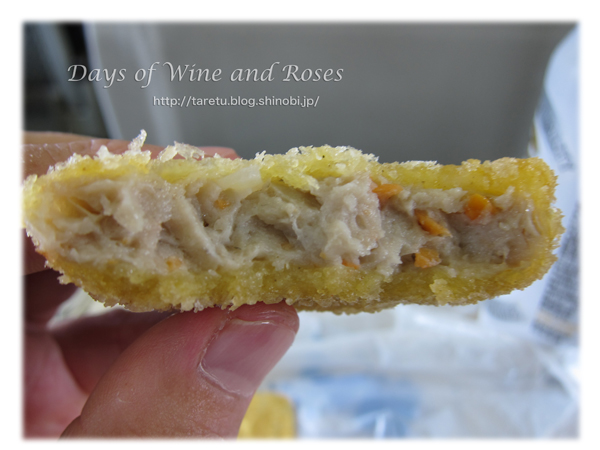 じゃこ天の材料に、コロッケのように野菜を混ぜて、衣をつけて揚げたものです。