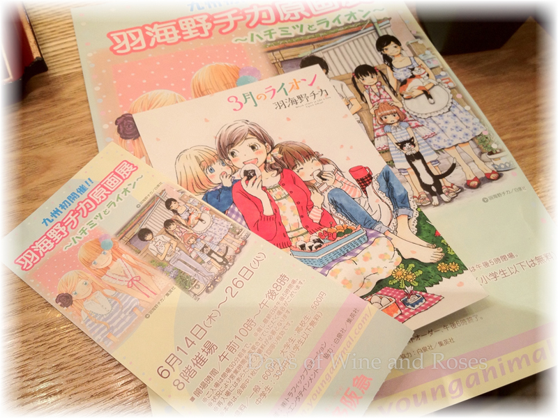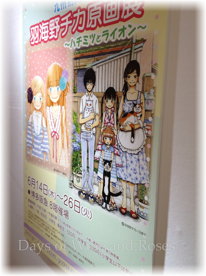 大好きな漫画「ハチミツとクローバー」「三月のライオン」の羽海野チカの原画展が福岡にやってきました。こういう原画展が福岡であることは珍しいので嬉しいです。ということで、早速初日に博多阪急に行ってきました。