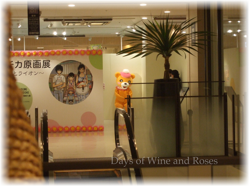 もちろん、会場内は撮影禁止ですが、エスカレーターの向こうから顔を出している作者の分身ウミノクマさんを望遠で撮影。