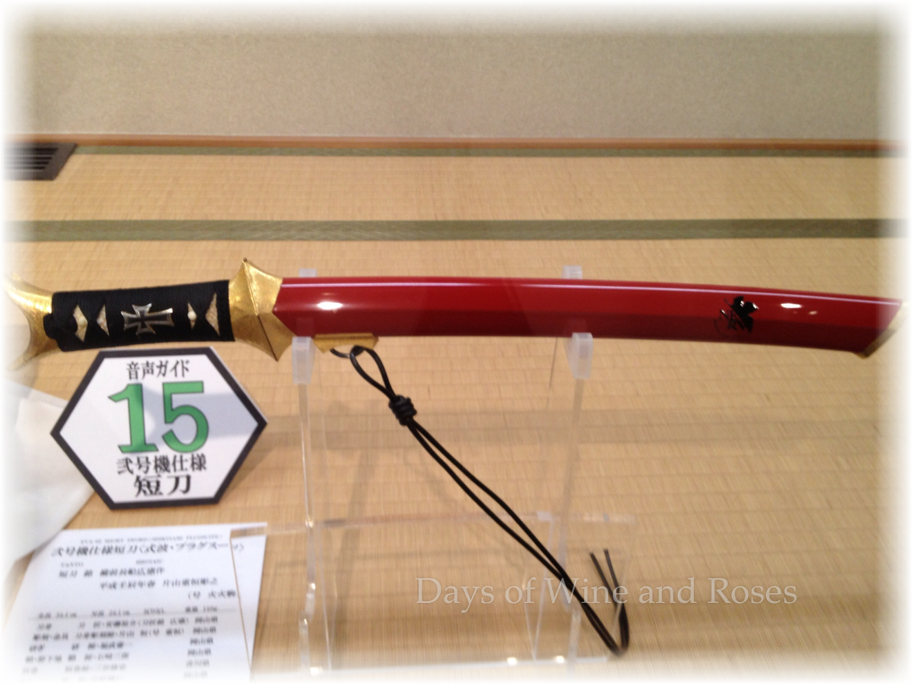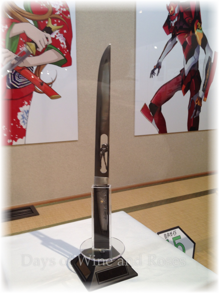 拵えも存分に凝ったつくり。会場ではわかりませんでしたが、柄頭は零号機の顔を模してあり、緑メノウがはめこまれているのだそうです。