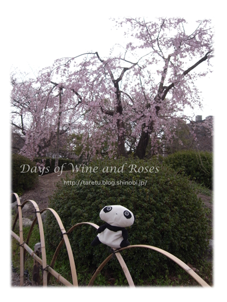 夜に、ライトアップで、幻想的で蠱惑な姿を見せていたしだれ桜は、昼間は淑やかに、穏やかな姿を見せています。