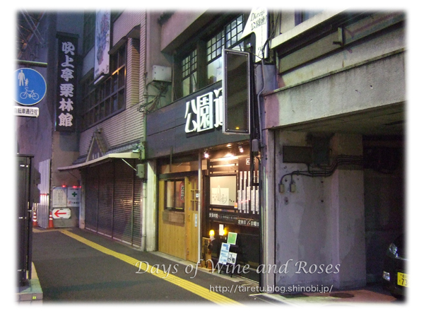 うどん屋さんのとなり。大きく公園通りとの看板がでています。階下はたこやき屋さんのよう。