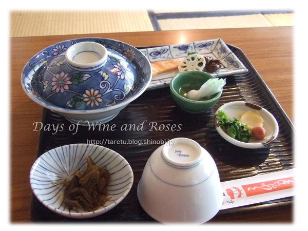 お団子なんかがメインなのですが。ここで朝食だと、ちょっと風情がないかなと案じていたら、朝食は離れの茶室に案内されました。よかったよかった。