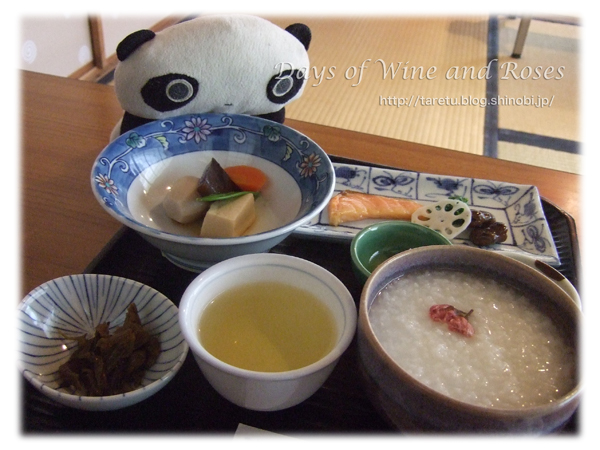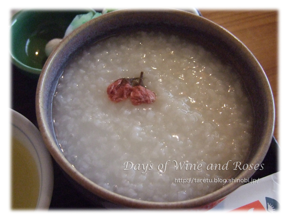で、後から桜の塩漬けが載ったおかゆがでてきました。