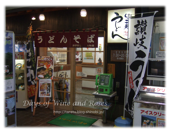 食事のできる場所として目立つのはこの讃岐うどんののぼりをたててのうどん屋さん。改札を出なくてもホームからも食べたり、持ち帰りを買ったりすることができます。