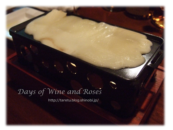 メニューに、「ラクレット」とありました。名前だけは知っていたけれど、食べたことがなかったので興味を惹かれました。要するにチーズを溶かしたものを、パンや茹でたジャガイモに載せて食べるというお料理。専用の機械でチーズを溶かします。