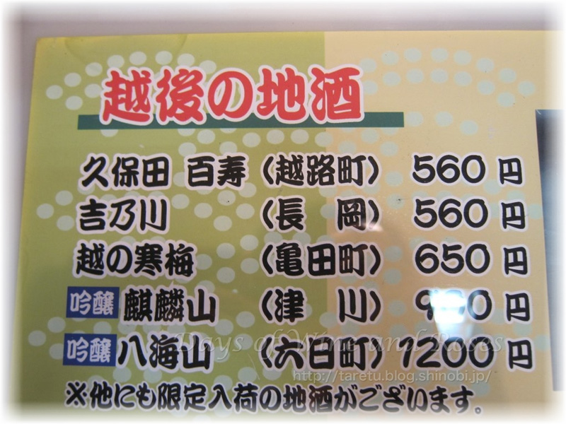 新潟だと、「越乃寒梅」がこんなお値段で飲めるんですね。