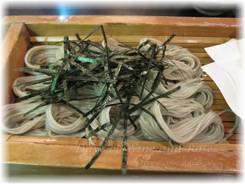 これが「へぎ」に盛られた蕎麦。中に海藻が練り込まれているだそうです。