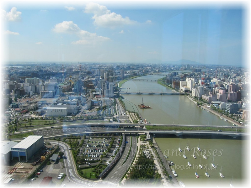 会議場の朱鷺メッセから見る新潟市の風景。佐渡はさすがに遠く霞んでいたそう。