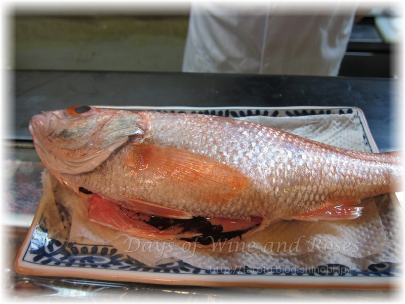 旬の美味しいお魚を、ということで「のどぐろ(アカムツ)」をすすめられた様子。