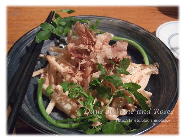 これは大根のサラダだったかな。あっさりとした大根に明太マヨネーズがとてもあって、さっぱりとした一品でした。