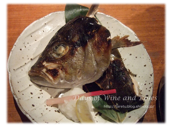 かんぱちのかしら焼きです。脂がのっていて美味しいです。魚はやはり、このカマの部分が一番美味しいような気がします。