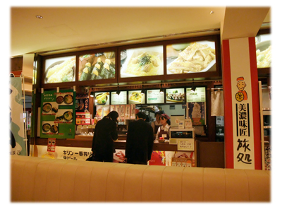 セントレアにはフードコートのようなコーナーがあり、ここにはきしめん屋さんが入っているそうです。美濃味匠 旅処 というお店だそう。