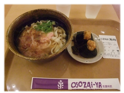 最初冷たい「きしめん」があるのを知らなかったので、暖かい「きしめん」と天むすのセットにしたそうです。