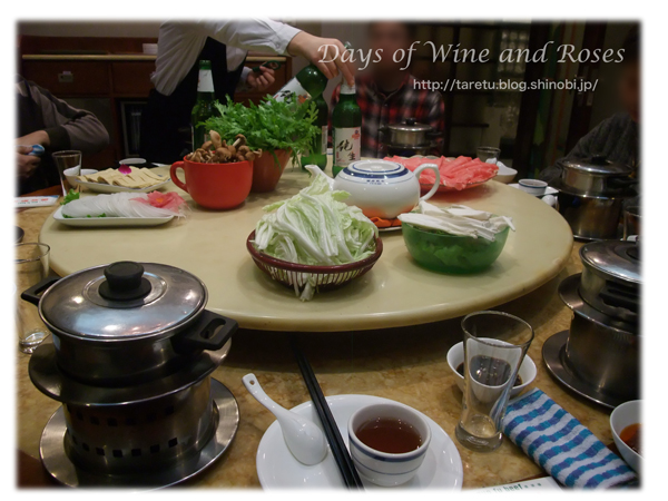 鍋といってもひとり一個づつ。具のほうを中華風ターンテーブルで回してとるのだそうです。