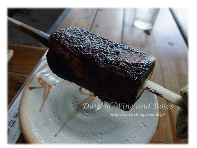 焼けた田楽は、表面の味噌が焦げているので、あまり美しくないですが、お味のほうは格別。