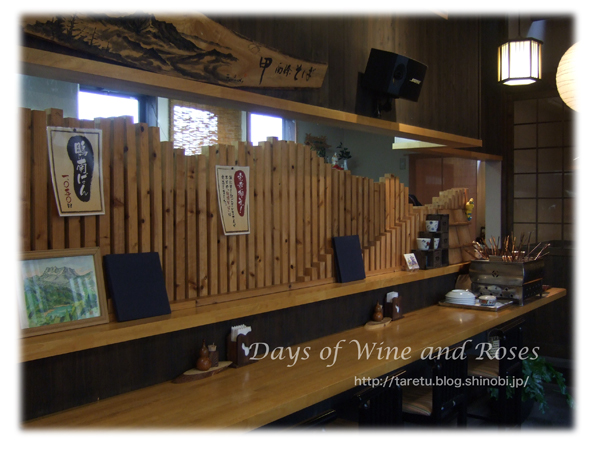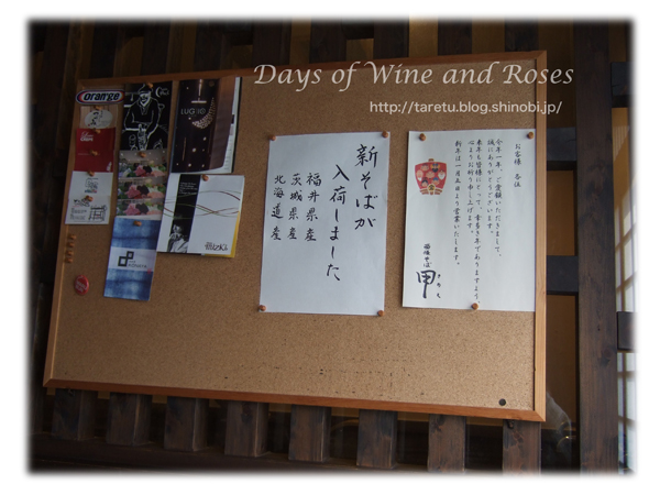 壁には日本酒が置いてあって、蕎麦といっしょに一杯という粋なことができるお店のようです。夜に来たいけれど、ちょっと無理だなぁ。
