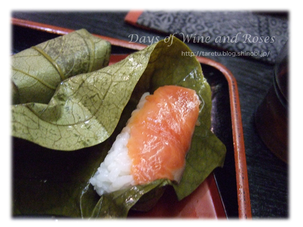 柿の葉ずしは鯖と鮭の二種類。悪くない取り合わせですね。