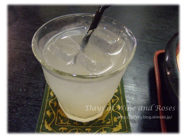 いっしょにお願いした生搾りジンジャーエールは、実際にショウガを生搾りにしてあるようで。結構、強い刺激。これはなかなかいけます。身体までポカポカしてきて、自分で作ってみようかと思ってしまいました。