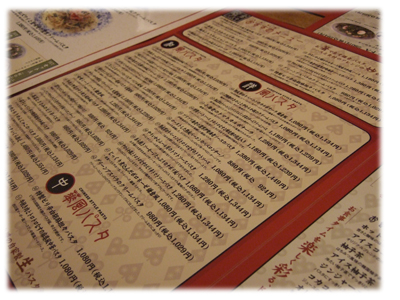 メニューをあけてみると細かい字でびっしり。これだけ数があると、選ぶのが相当に大変です。いやー、ただでさえ迷いやすいほうなんですが…。