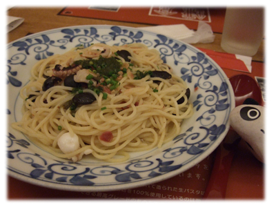 スパゲッティ専門店なのに、ちょっと和風な雰囲気。靴を脱いでお座敷で食べるという方式です。