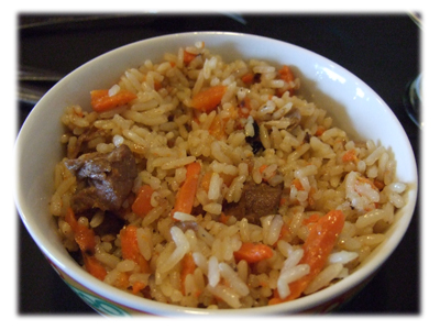 後からネットで調べると、これはプロフというウズベキスタンに伝統的なピラフなんだそう。祭りの時は羊をつぶして大量に作り食べるのだとか。