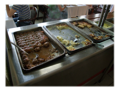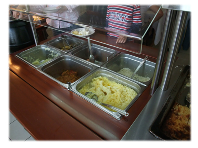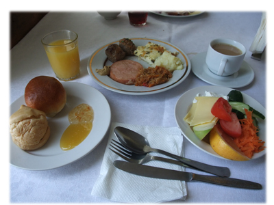 ビュッフェスタイルで朝からかなり重たい食事ですが、ありがたくいただきます。