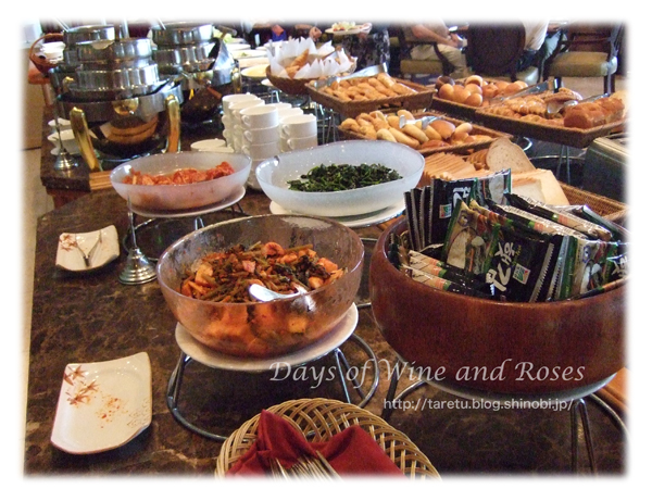 もちろん、韓国風の朝食もあって、キムチも韓国のりも置いてあります。おかゆや白ご飯も。
