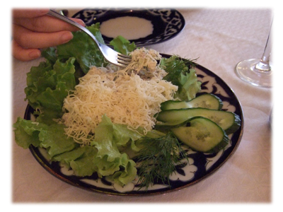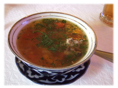 スープは子牛肉をよーく煮込んだもの。ほろほろしていて、美味しいです。これはウズベキスタン料理ですが、やはりロシアではスープは美味しいです。
