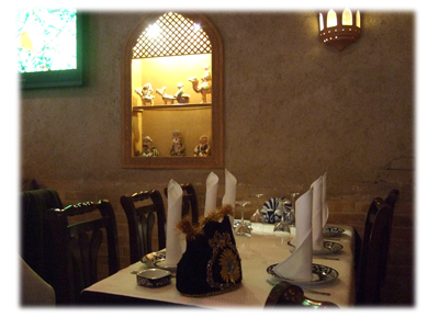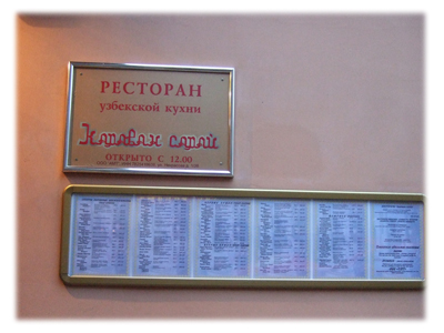 店内もウズベキスタン風。一応、英語を喋るウェイターさんもいました。サンクトペテルブルグのほうが、観光地だけあってモスクワよりも英語は通じやすいみたいです。もちろん、比較の問題で。ほとんど通じないと考えておいたほうがいいですが。