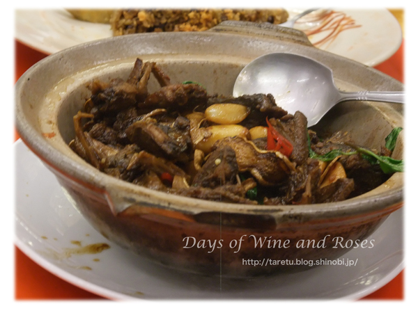あらわれたメイン(?)は鳩肉。「なんだと思う?」って言われて「チキン」と答えると、「鶏の骨はこんなに大きくないよ。ふっふっふ。」