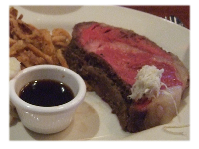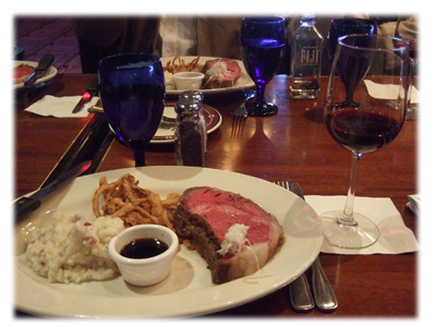 で、ここのお店のイチオシメニューのプライムリブをカリフォルニアワインとともに。ま、お祝いだからね。