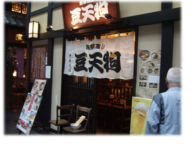 名古屋といえばきしめんですが、この時点で冷たいきしめんを食べられるお店を見つけられてなかったので、以前に入ったことのある飛騨高山ラーメンのお店「豆天狗」に入りました。