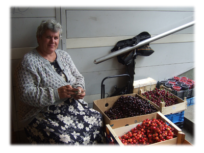 路上のおばちゃんに、勇気を出して英語で話しかけながら、サクランボを指さし、後は100ルーブル札を出します。