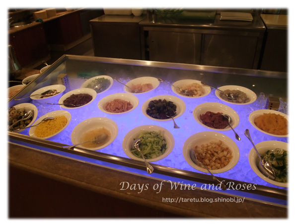で、お定まりのビュッフェスタイルの朝食です。これは野菜サラダなのかな。