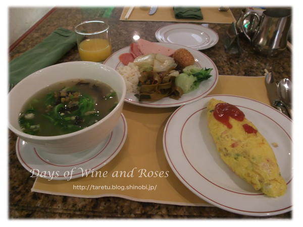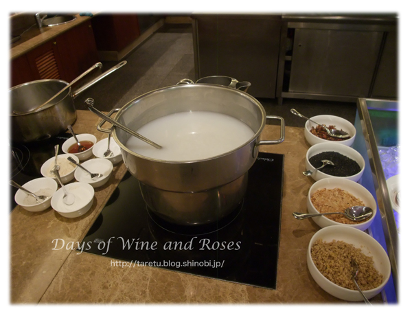 このお粥も食べたそうですが、配偶者のビュッフェの朝食が粥だけですむはずがなく。