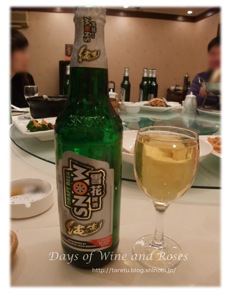 これは、大連の雪花ビール(スノウビール)。中国といえば青島ビールが有名ですが、残念ながら地元の雪花ビールしかなかったそうです。