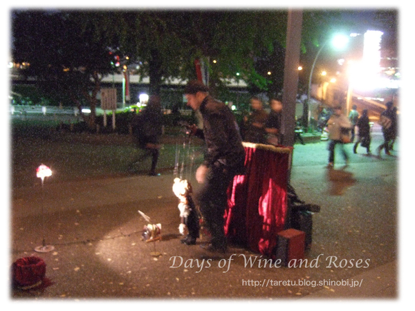 大道芸をしている人を撮影しましたが、残念ながら暗すぎてピンがあってませんね。