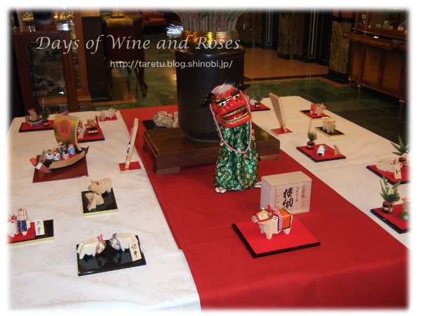 でも、さすがに正月なので、簡単な正月飾りも飾ってありました。”たれ”といっしょに写真が撮りたかったのですが、フロントの正面なので、ちょっと無理。普通に写真を撮るのが精一杯ってところですね。